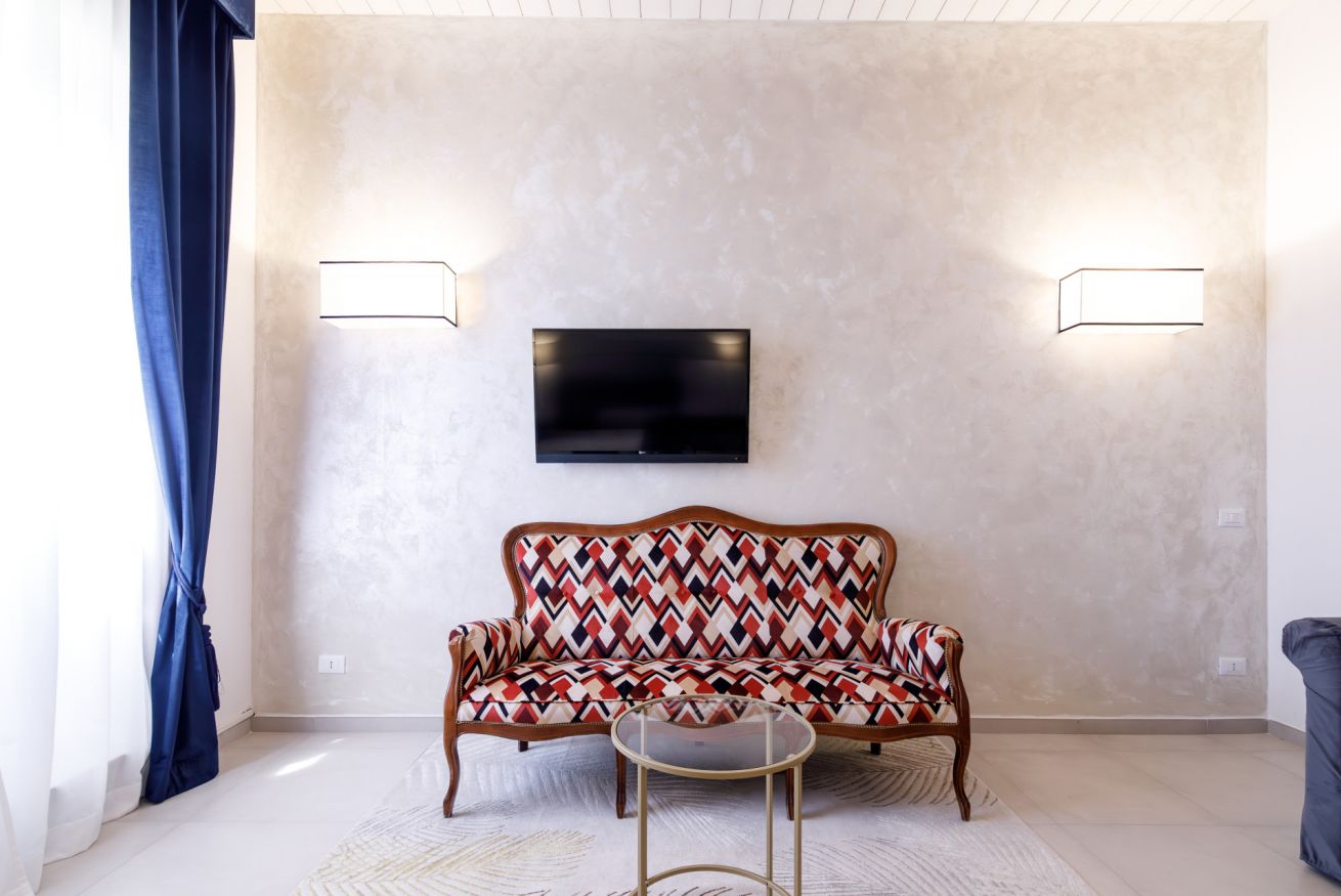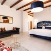 La King Suite è dotata di: aria condizionata, riscaldamento, wi-fi, Tv a schermo piatto, divano, sedia e scrivania, armadio a vista, set di cortesia, asciugacapelli, pavimento in piastrelle e soffitto con travi in legno a vista.