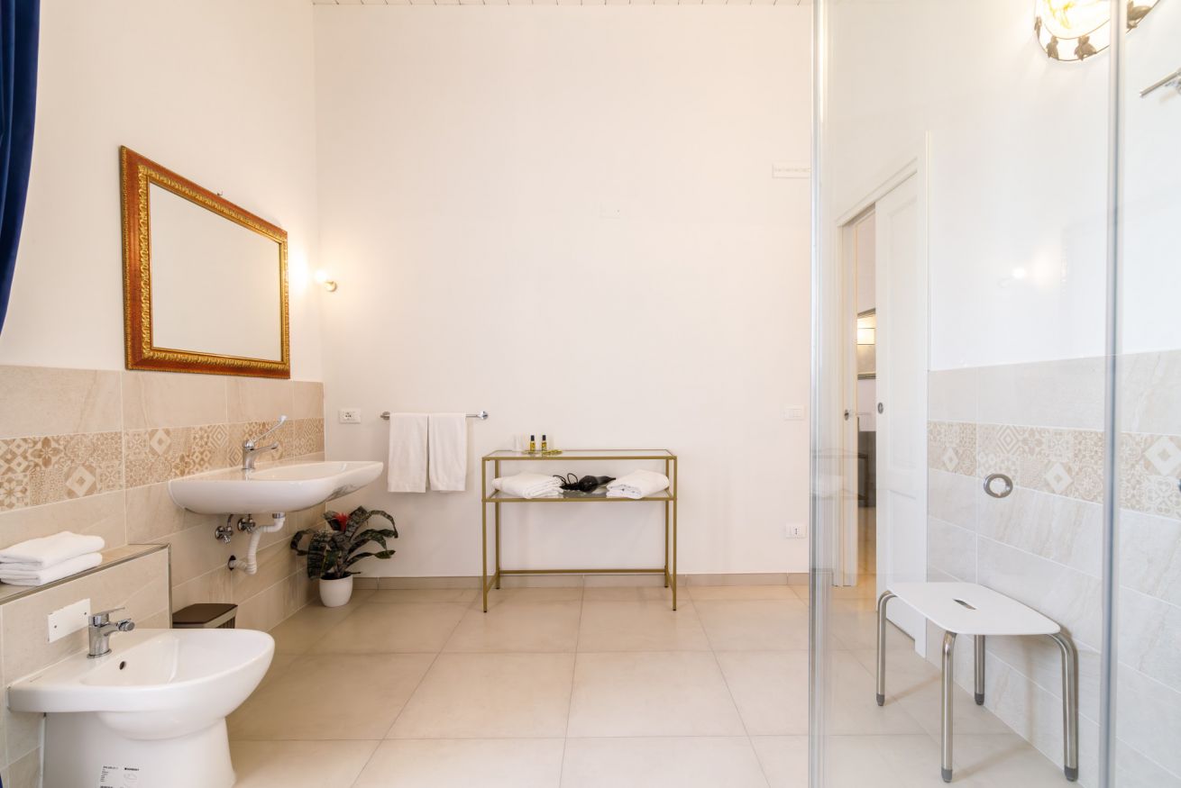 La camera di 38 mq è cosi composta: letto matrimoniale 'king size' con possibilità di aggiunta di 2 letti singoli, ampio bagno privato finestrato con doccia a soffione e tutti i suoi comfort.