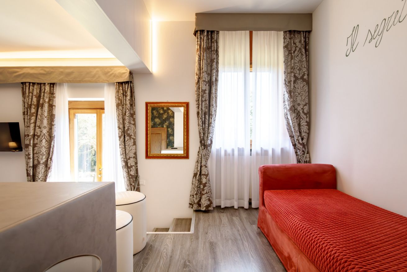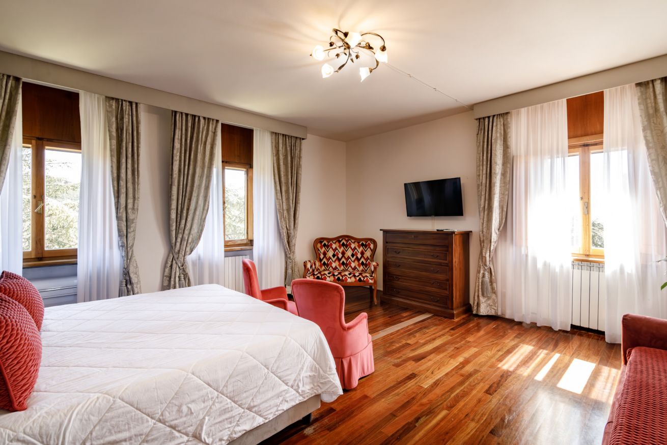 Pensata per famiglie o gruppi di amici, la Suite con Vista Giardino unisce spazio, comfort e funzionalità.
