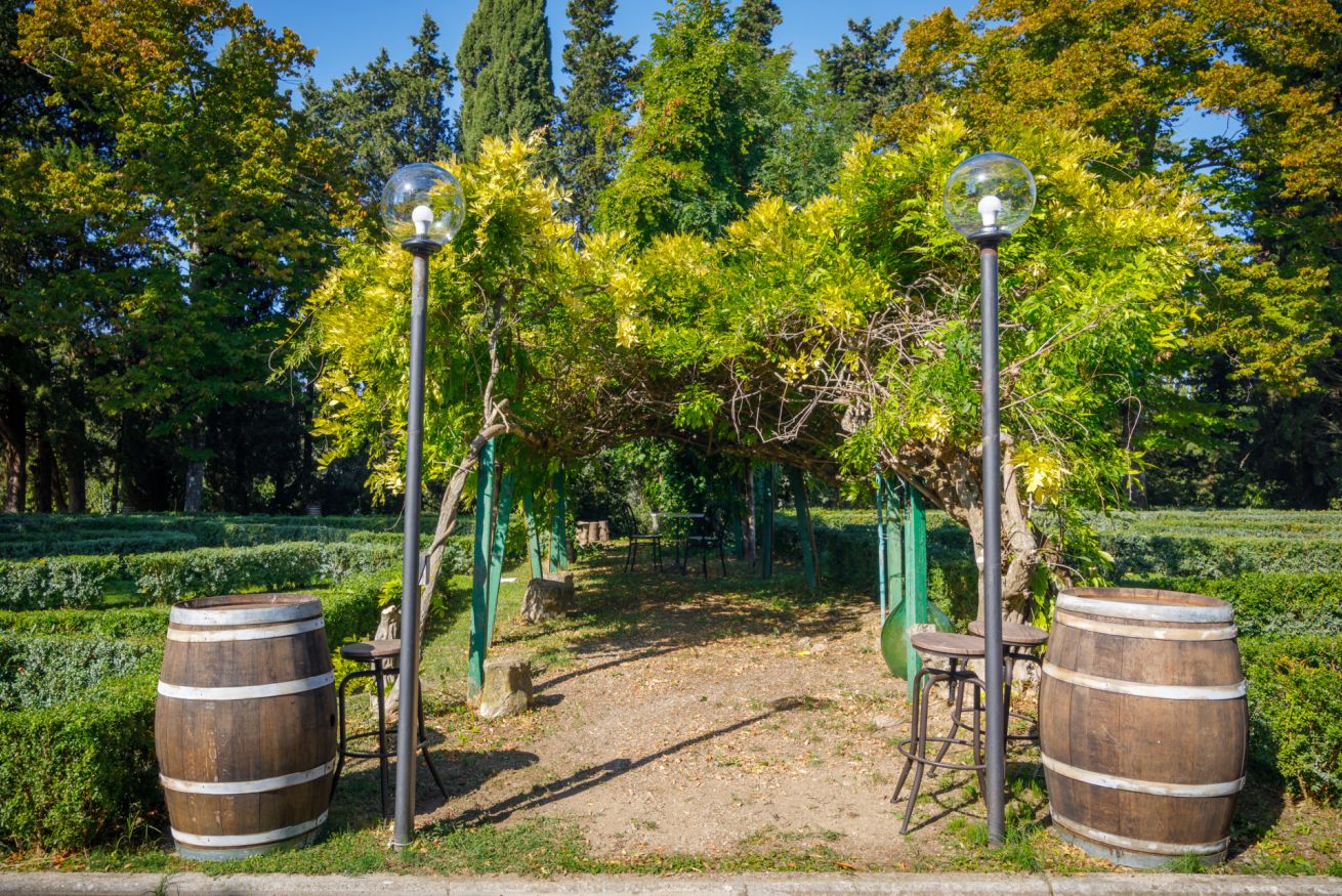 Potrete degustare i nostri piatti nella veranda esterna nel giardino della villa oppure nelle sala interna seduti al fianco di vecchie botti di rovere.
